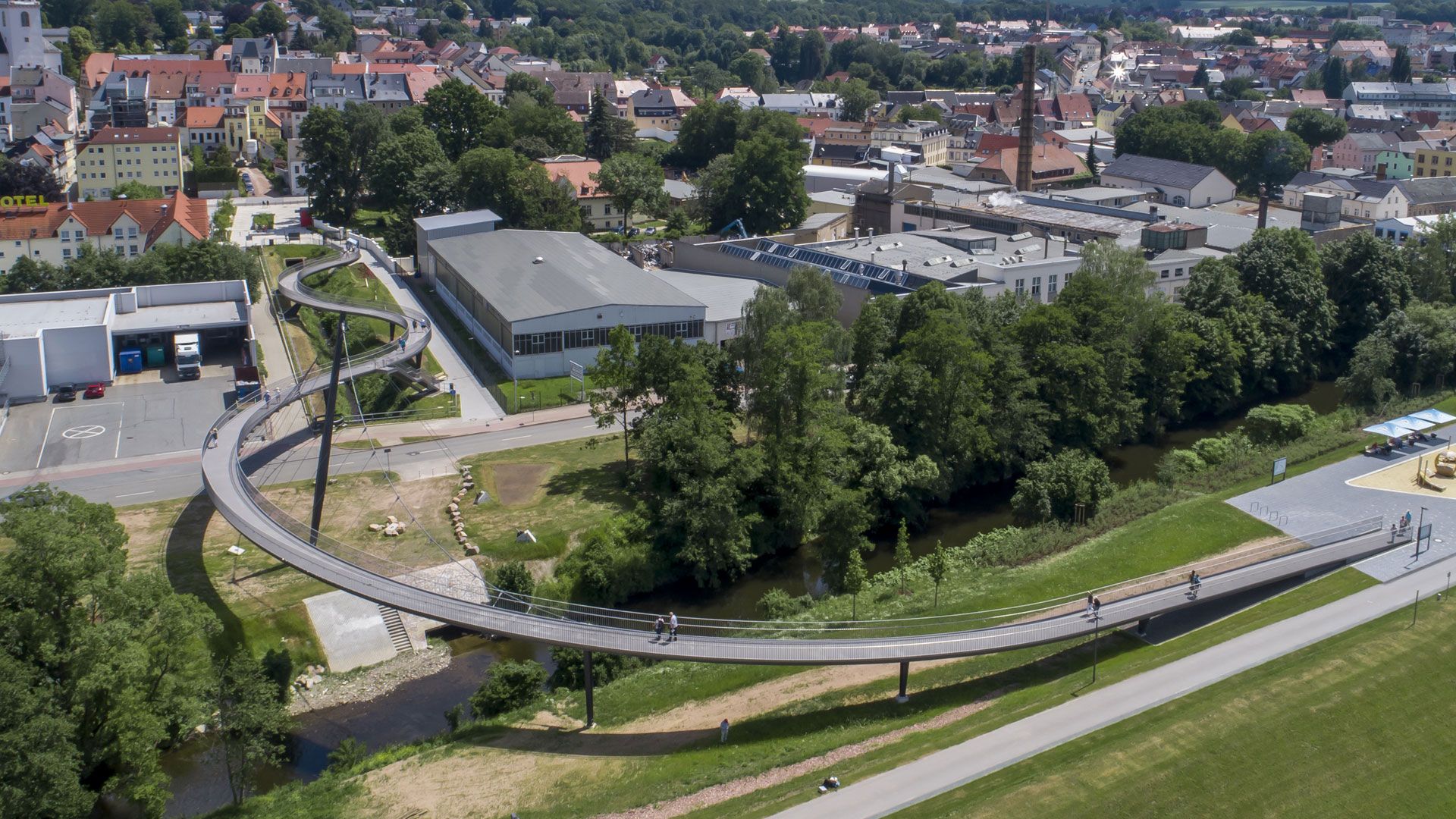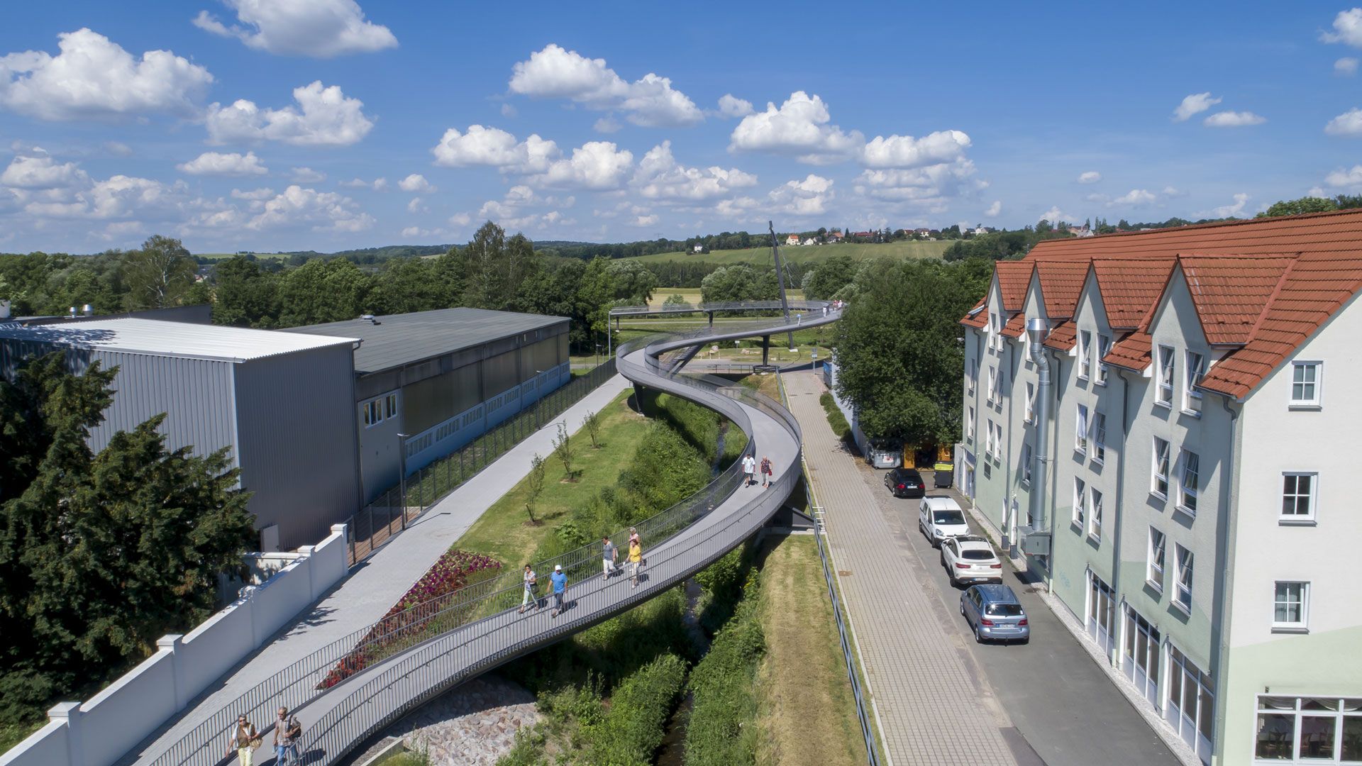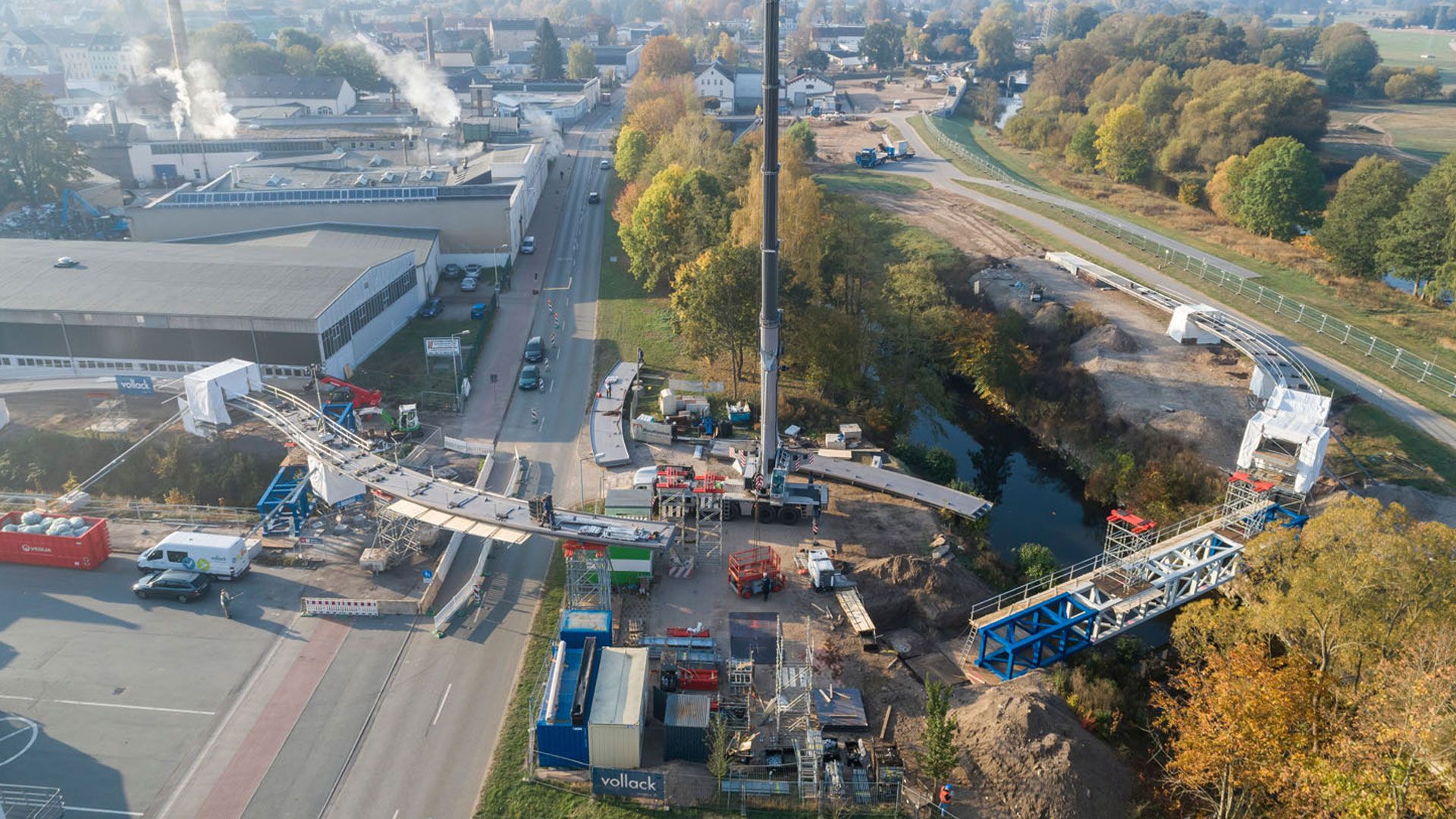Erneut war die Vollack Hallen- und Stahlbau verantwortlich für den anspruchsvollen Bau einer Brücke. Die Rad- und Fußgängerbrücke verbindet das Zentrum von Frankenberg mit den neuen Freianlagen der Landesgartenschau 2019.