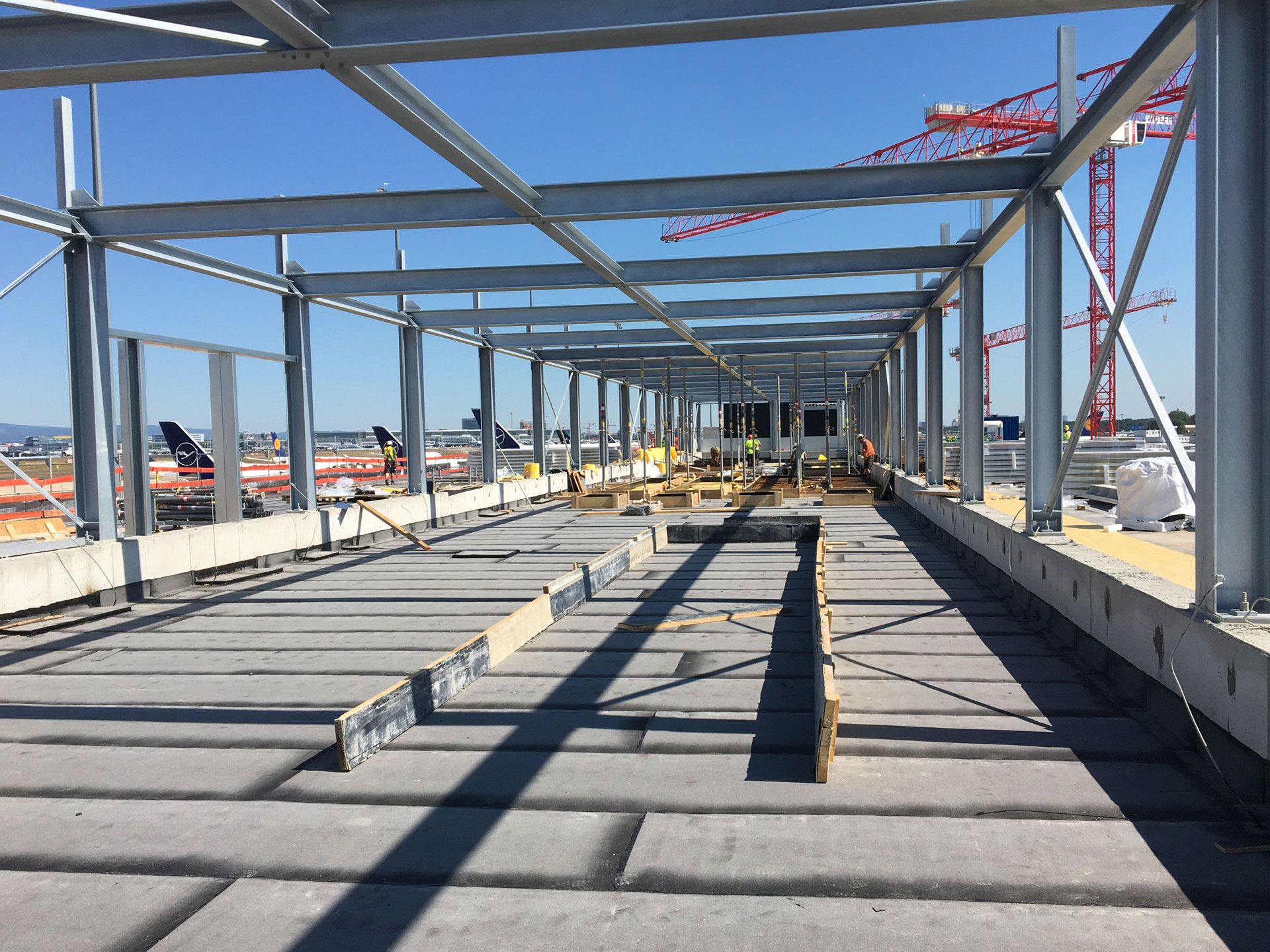 Am neuen Terminal 3 des Frankfurter Flughafens entstand mit dem Pier G der erste und größte von drei Flugsteigen. Vollack war mit den Stahlbauarbeiten der Dachtechnikzentralen, der Gepäckförderanlage und verschiedenen Fassaden- und Schlosserkonstruktionen beauftragt.