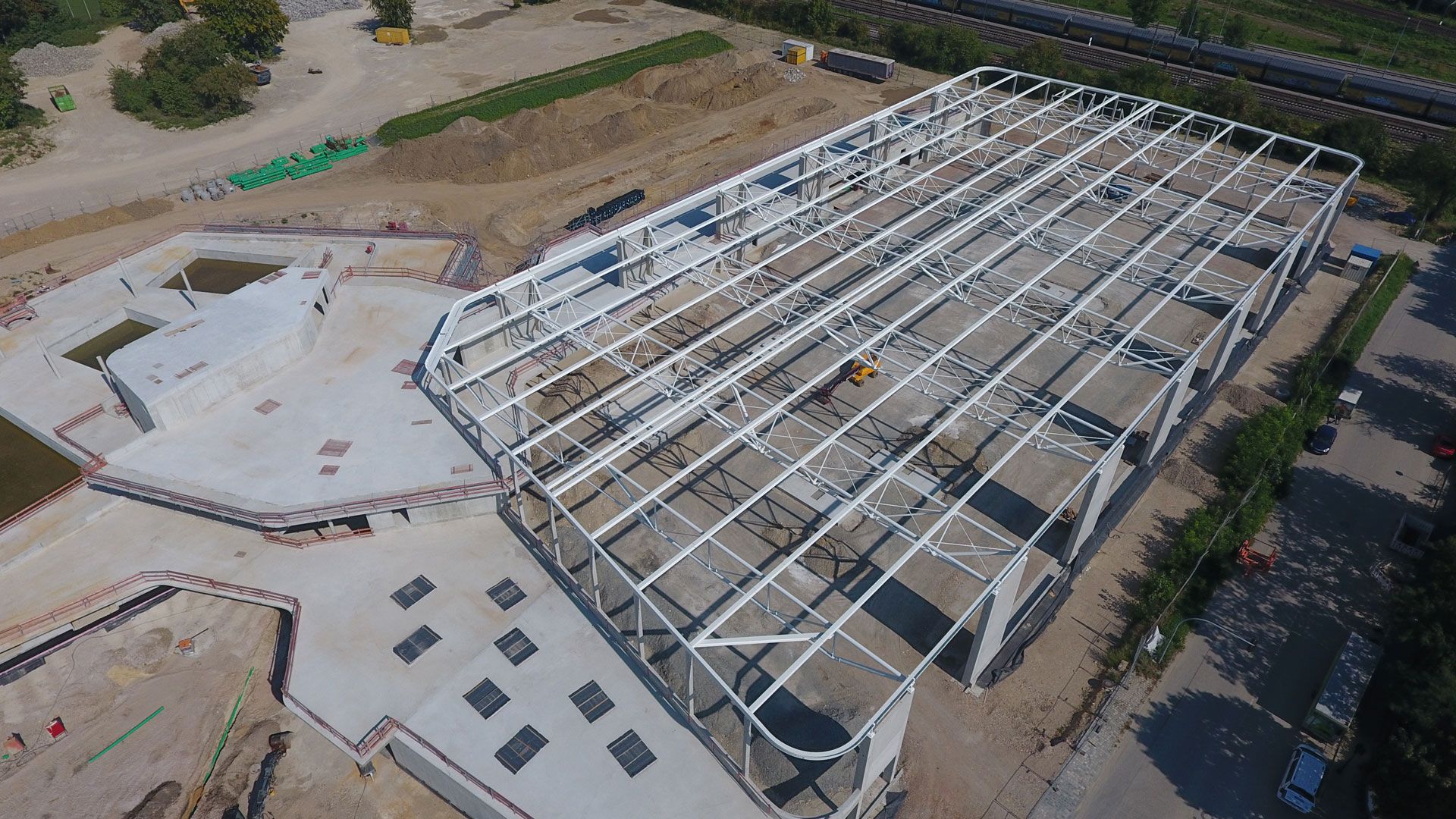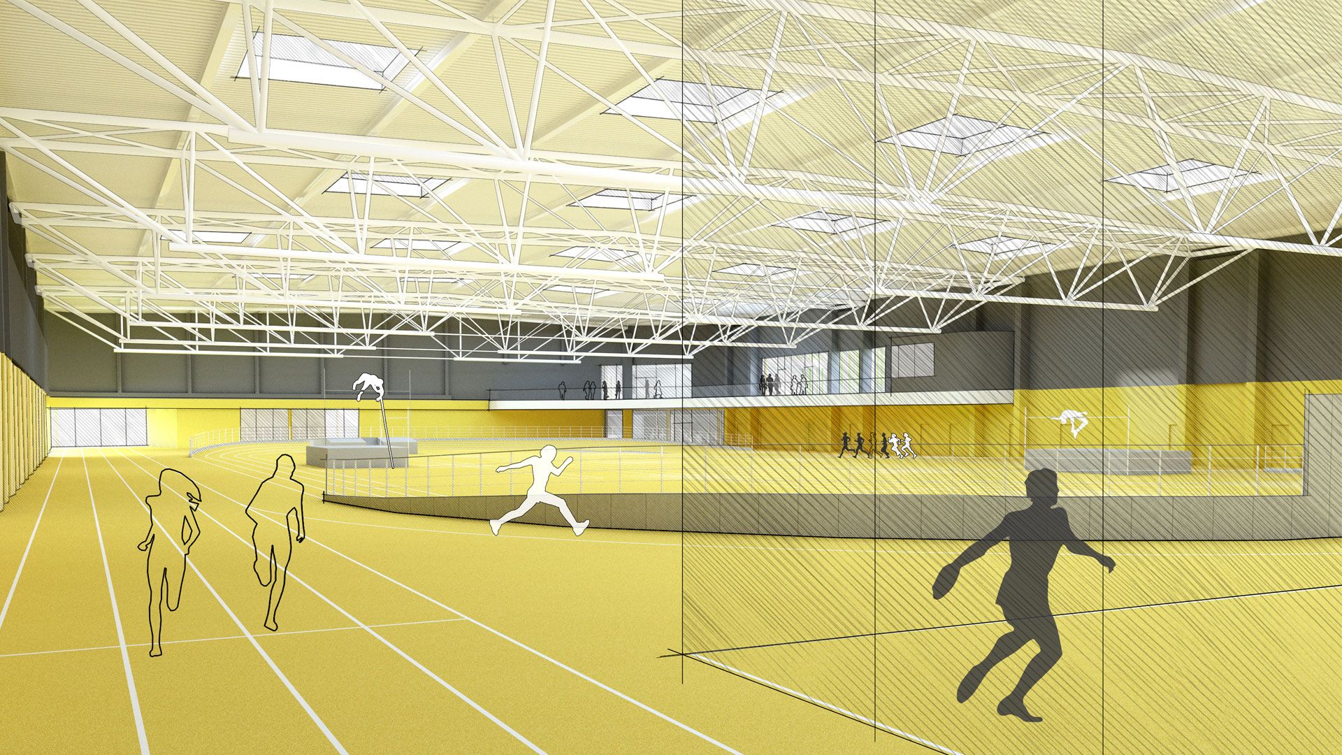 Vollack Hallen- und Stahlbau wurde mit den Stahlbauarbeiten für die Leichtathletiktrainingshalle beauftragt, die unter anderem die Ausführung von Fachwerken als Dreigurtbinder mit einer Spannweite von 54 Metern beinhalten.